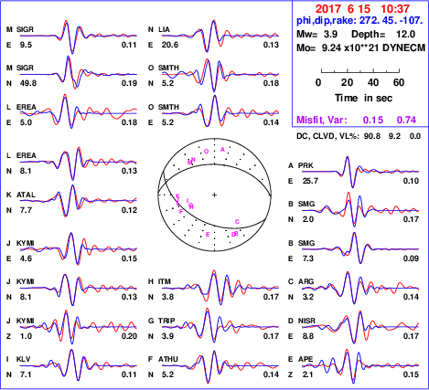 | strike | dip | rake | seismic moment | |